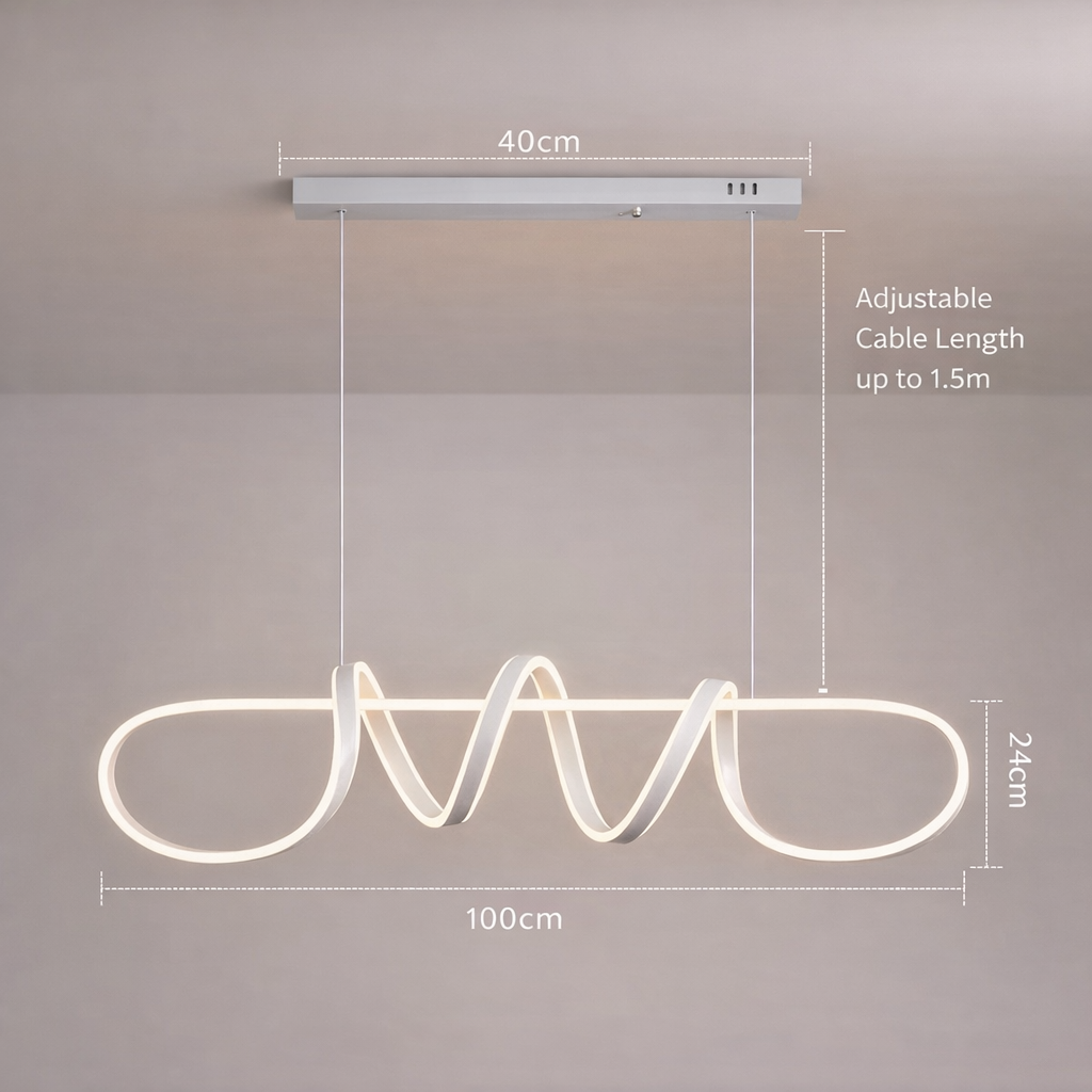 Elevate your interior design with our Modern Wavy Ribbon LED Pendant Light. This sculptural masterpiece combines fluid, abstract aesthetics with advanced lighting technology. Featuring a unique “wave” design, this 100cm linear fixture provides a striking focal point for your dining room, kitchen island, or executive office.